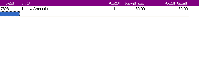 ولإضافة بيانات الأدوية للفاتورة من خلال الجزء