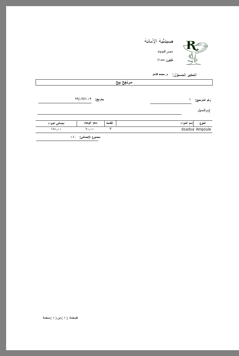 عند إضافة الأدوية للفاتورة يظهر إجمالي الفاتورة
