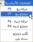 قم بالضغط على قائمة العمليات الأساسية ثم مرتجع بيع